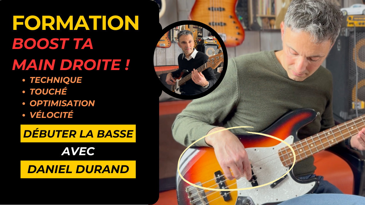 La main droite (pour un bassiste droitier) est la main qui pose le rythme (placements), qui donne la qualité du son mais aussi le volume sonore.